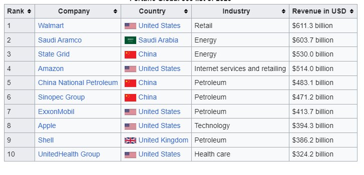 Fortune Global 500 (2023) Kaynak: Wikipedia