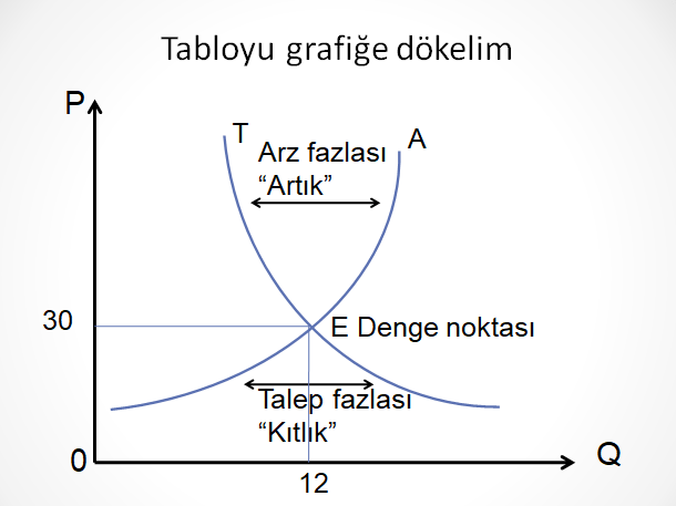 Arz ve talebin kesiştiği yerde “Denge fiyatı” ve “Denge miktarı” belirlenir. Yani; arz ve talebi birbirine eşitleyen fiyat düzeyine “Denge Fiyatı” denir.