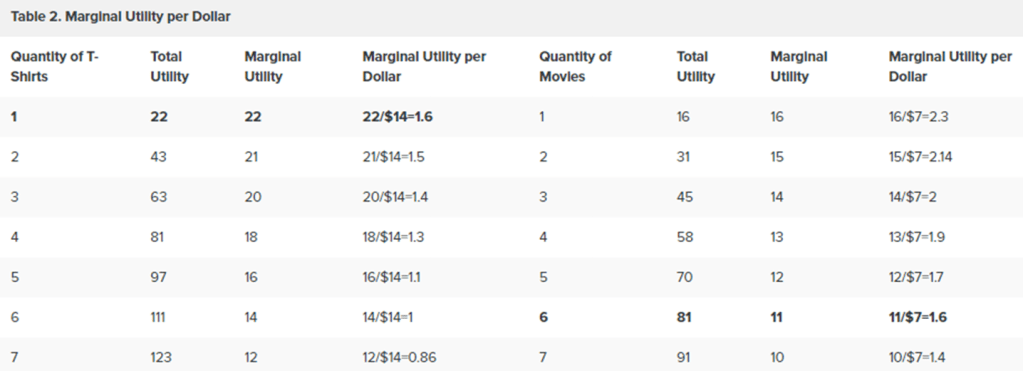 •Adım 1. Tablo 2’den José, dördüncü tişörtün marjinal faydasının 18 olduğunu görebilir. José dördüncü tişörtten vazgeçerse, o zaman 18 util kaybeder.