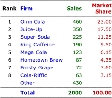 Örnek Soru: Yukarıdaki tabloya göre HHI ve 4 Firma Konsantrasyon oranlarını hesaplayınız.