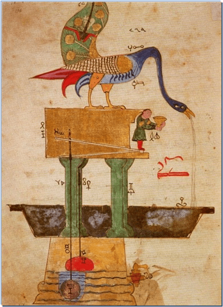 13. yüzyıl Bilim İnsanı İsmail el-Cezeri birkaç otomatik cihaz yapmıştır. Hidroenerji ile tahrik edilen otomatik hareketli tavus kuşu inşa etmiştir.