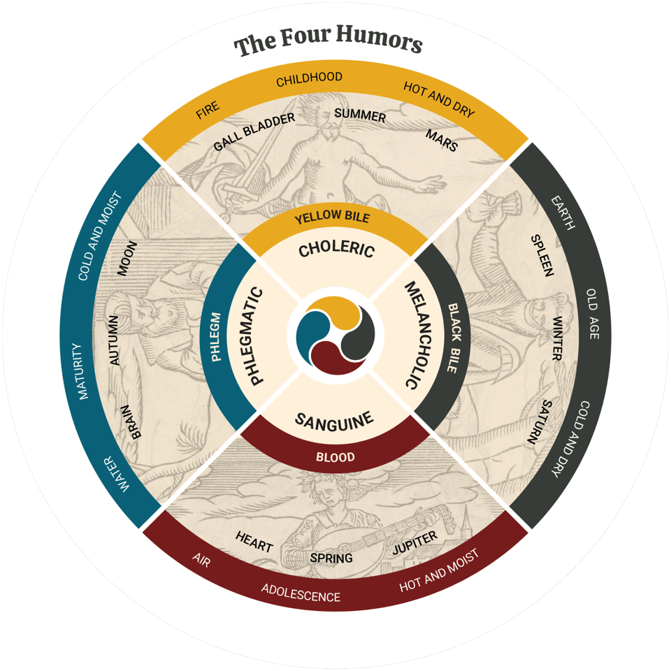 Galen patolojinin anlaşılmasına önemli ölçüde katkıda bulunmuştur. Hipokratik bedensel sıvılar teorisine göre, insan ruh halindeki farklılıklar dört bedensel sıvıdan (kan, sarı safra, kara safra ve balgam) birindeki dengesizliklerin bir sonucudur. Galen bu teoriyi ve insan mizaçlarının tipolojisini desteklemiştir. Galen’in görüşüne göre, her bir mizacın dengesizliği belirli bir insan mizacına karşılık geliyordu . Dolayısıyla, kanlı bireyler dışa dönük ve sosyaldir; sarı safralı insanlar enerji, tutku ve karizmaya sahiptir; kara safralı insanlar yaratıcı, nazik ve düşüncelidir; ve balgamlı insanlar güvenilirlik, nezaket ve şefkat ile karakterize edilir.