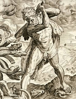 Bu takımyıldızı Yunan mitolojisinde de benzer bir hikâyeyle ilişkilendirilir. Olimposlu tanrılar Titanları ve Devleri yendikten sonra, Gaia ya da Toprak Ana, Zeus’un Titanları hapsettiği Yeraltı Dünyası bölgesi Tartarus ile birleşmiş ve dünyanın gördüğü en korkunç canavar olan Typhon’a sahip olmuşlardır. Typhon’un yüz ejderha başı vardı ve tüm gözlerinden ateş fışkırıyordu. Gaia, Typhon’u tanrıları yenmesi için göndermişti. Onun geldiğini ilk gören Pan olmuştu.