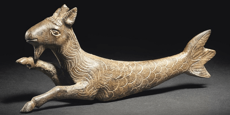 Keçinin sıklıkla temsil edildiği balık kuyruğunun bir açıklaması, canavar Typhon’dan kaçınmak için tam hayvan şekline dönüşürken suya atlayan Pan’ın Yunan efsanesinde bulunur. Suyun üstündeki yarısı keçi şeklini alırken, alt yarısı, yani kuyruğu balık şeklini almıştır.