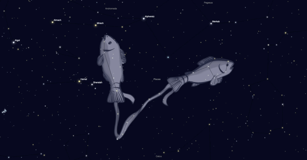 Balık takımyıldızı Babil kökenlidir. Babilliler onu bir iple birbirine bağlanmış bir çift balık olarak görmüşlerdir. Takımyıldızı genellikle, canavar Typhon’dan kaçmak için kendilerini bir iple bağlayıp balığa dönüşen Venüs ve Cupid’in Roma efsanesiyle ilişkilendirilir. Geleneksel adı Alrescha (Arapça’da “kordon”) olarak da bilinen Alpha Piscium yıldızı ipin düğümünü işaret eder.