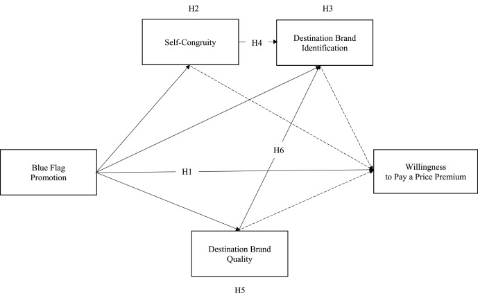 - H4 Benlik uyumu ve DBI, Mavi Bayrak promosyonu ile WPPP arasındaki ilişkiye ardışık olarak aracılık etmektedir.