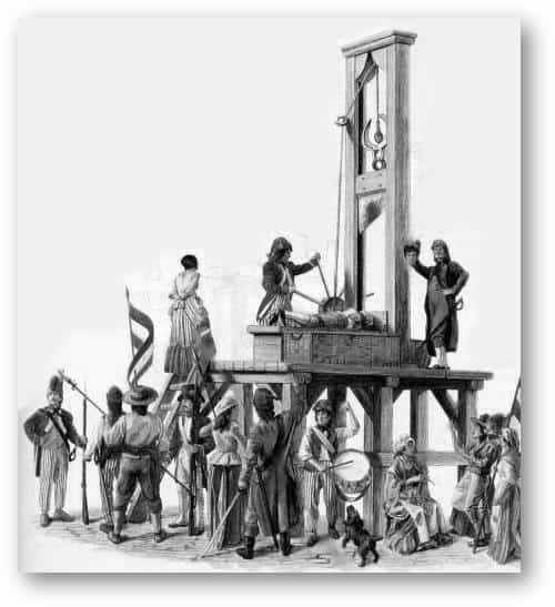 Giyotin en çok Fransa’da, özellikle de devrimin destekçilerinin onu halkın intikamcısı olarak kutladığı ve devrimin muhaliflerinin onu Terör Saltanatı’nın şiddetinin önde gelen sembolü olarak kötülediği Fransız Devrimi sırasında kullanılmasıyla bilinir. “Giyotin” isminin kendisi bu döneme ait olsa da, benzer aletler Avrupa’nın başka yerlerinde birkaç yüzyıldır kullanılmaktaydı. Eğik bir bıçağın ve boyunduruk benzeri bir zapt etme aygıtının kullanılması bu giyotin türünü diğerlerinden ayırmaktadır. Kesik başların sergilenmesi uzun zamandır Avrupalı hükümdarların tebaalarına güçlerini göstermelerinin en yaygın yollarından biriydi.