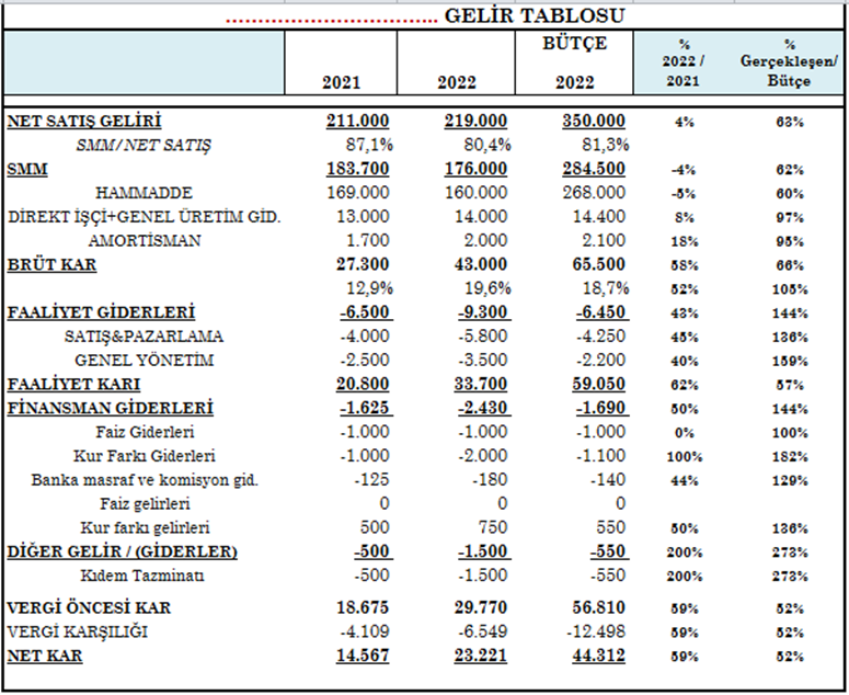 Gelir Tablosu: Gelir tablosu, işletmenin belli bir dönemde elde ettiği tüm gelirler ile aynı dönemde katlandığı bütün maliyet ve giderleri ve bunların sonucunda işletmenin elde ettiği dönem net kârı veya zararını gösteren bir tablodur. Gelir tablosu mali tablolar ilkelerine uygun tek düzen formlar şeklinde hazırlanır.
