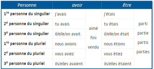 Plus-que-parfait = auxiliaire dans l’imparfait + participe passé du verbe