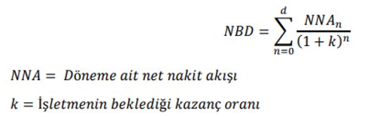 Bir anüitenin bugünkü değeri: Anüite, eşit aralıklarla gerçekleşen bir dizi eşit ödeme veya gelirdir. Finansal kiralamalar ve kira ödemeleri buna örnektir. Ödemeler veya makbuzlar, normal bir anüite için her dönemin sonunda gerçekleşirken, vadesi gelen bir anüite için her dönemin başında gerçekleşir. Sürekli bir nakit akışının bugünkü değeri, özdeş nakit akışlarının sonsuz ve sabit bir akışıdır.