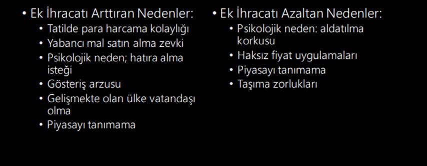 - Dışsatım yapan ülke (hedef / turist kabul eden ülke) fiyatlar üzerinde kontrol sahibidir