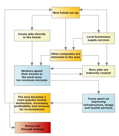Otel misafirleri çekmekte başarılı olabilir ancak otelin kurulmuş olduğu alandan dışarı olan gelir kaçakları otel yönetiminin kaynaklarını nerden aldığı dışındaki faktörler yüzünden artabilir. Dikkat çeken bir faktör otelin sahipliğidir. Eğer otel yabancı bir sahip elindeyse, karlar ana şirkete aktarılabilir ve bu şekilde yerel ekonomiden çıkmış olur.