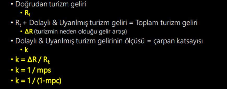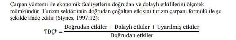 • Bu sebeplerle turizmin çarpan etkisinin yüksek olduğu kabul edilir.