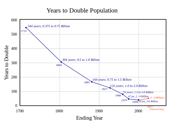 Resmi Birleşmiş Milletler Dünya Nüfus Beklentileri‘ nin en son (Temmuz 2015) revizyonuna göre, dünya nüfusu 2030 yılına kadar mevcut 7,3 milyardan (Temmuz 2015) 8,5 milyar seviyesine ulaşacak ve sonra 2050 yılına kadar 9 milyarı, 2100 yılına kadar ise 11.2 milyar kişiye ulaşacaktır.