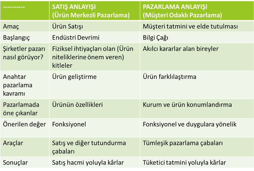 Pazarlama genel ve yanlış olan kanının aksine sadece reklam ve satış faaliyeti değil henüz üretim öncesinden başlayan, planlama- geliştirme, fiyatlandırma, tutundurma ve dağıtım süreçleri toplamıdır.